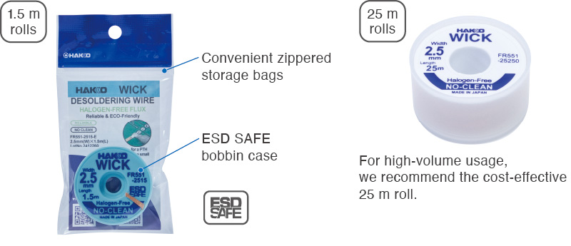 หลายคนใช้ลวดซับตะกั่วไม่ออก ไม่ใช่เพราะฝีมือ แต่อาจเป็น เพราะ ฟลักซ์ และ เส้นลวด ที่ไม่เหมาะกับงาน ลวดซับตะกั่วรุ่นใหม่! Hakko Wick FR551 ปรับสูตรใหม่ เอาใจสายซ่อมบัดกรี! ฟลักซ์สูตรใหม่ ‘No-clean & Halogen-Free Flux’ เสริมการซับตะกั่วออกได้ไวยิ่งกว่าเดิม เลือกตัวเลือกที่ใช่สำหรับคุณ ~!