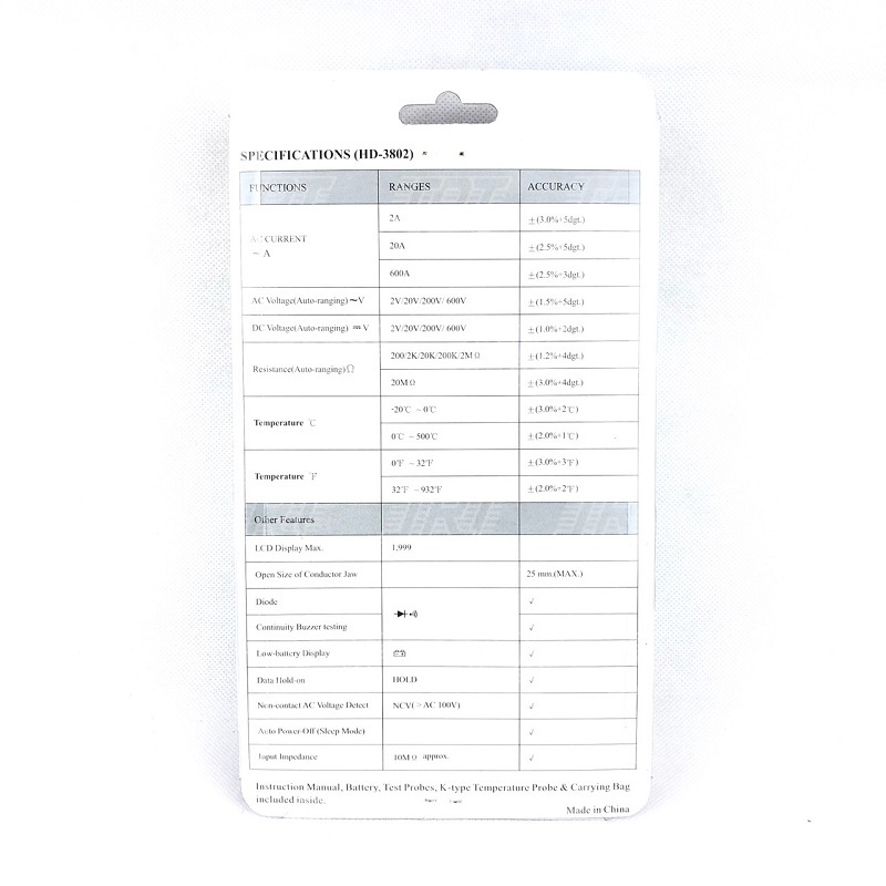รายละเอียดสินค้า-มัลติมิเตอร์ดิจิตอล (HD-3802)