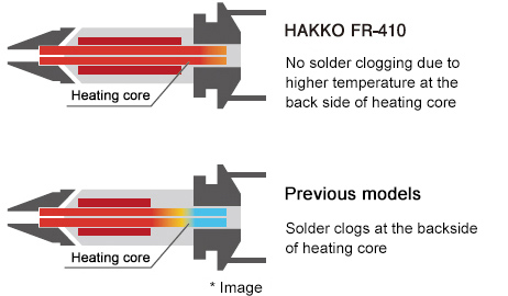 * Improvement in heating core Heating ability for backside of heating core is increased to ensure suctioned solder be carried to filter pipe and avoid solder clogging.