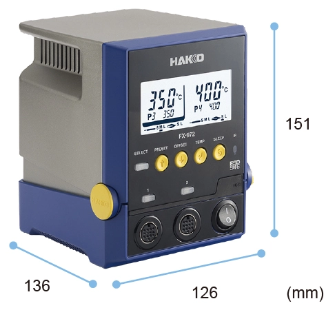 HOME  /  HAKKO  /  Soldering station (หัวแร้งพร้อมระบบควบคุมอุณหภูมิ)  /  FX972 (220V) Dual Port Station หัวแร้งชุด