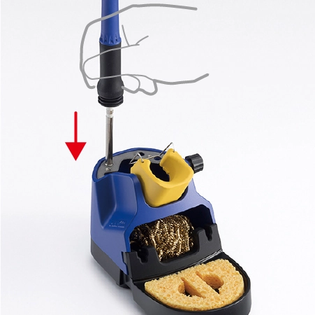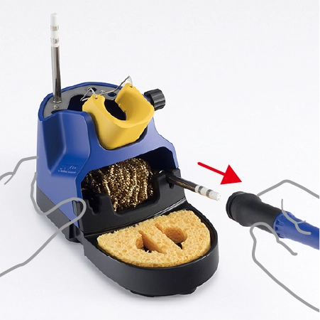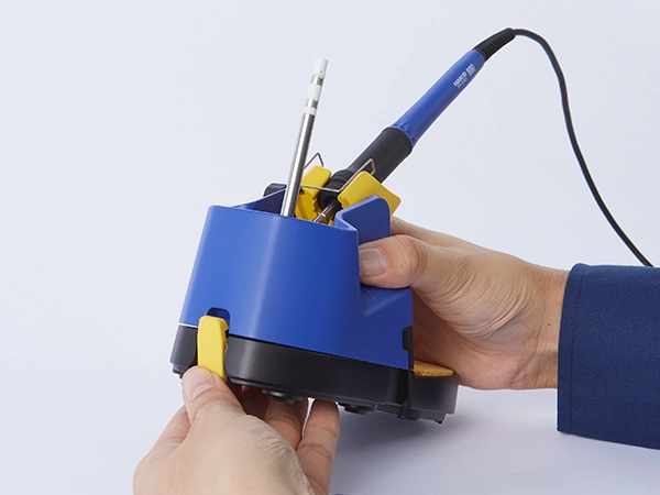 The newly designed iron holder allows easy and safe tip replacement with a tip removing attachment and tip