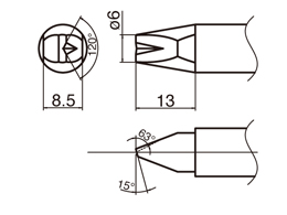 TX2-XDR6 (Shape-6XD with V-groove) SOLDERING TIP SHAPE-6XD W/V-GROVE FU-6001/FU-6002/HU-200/HU-100/HU-101/FU-500/FU-601