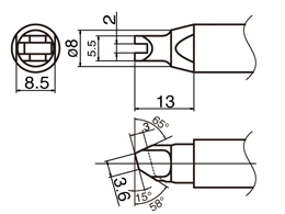 TX2-XRK (Shape-XK with slot) SOLDERING TIP SHAPE XK W/V-GROVE FU-6001/FU-6002/HU-200 HU-100/HU-101 FU-500/FU-601