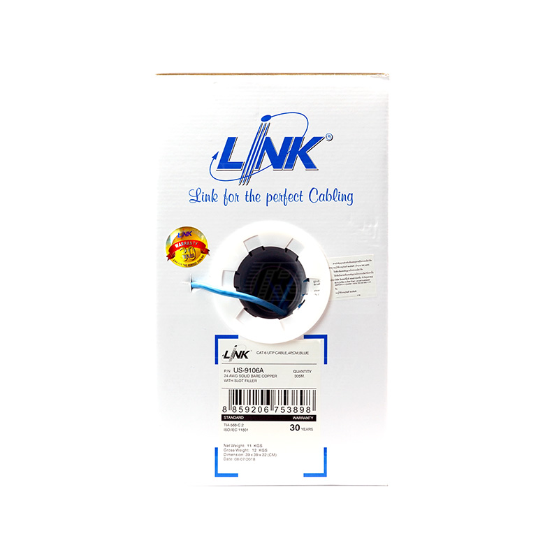 สาย UTP CAT6 CM US-9106A สีฟ้า 305M. LINK