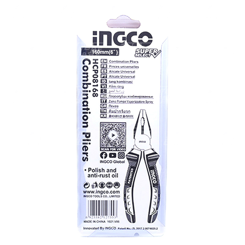 HOME  /  เครื่องมือ  /  คีม  /  คีมปากจิ้งจก  /  คีมปากจิ้งจก HCP08168 6 นิ้ว INGCO