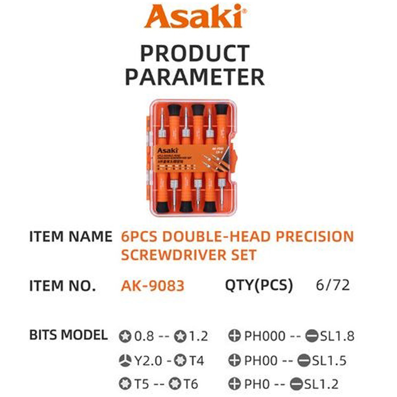 ไขควงชุดความแม่นยำ สองหัว ชุด 6 ชิ้น Asaki AK-9083