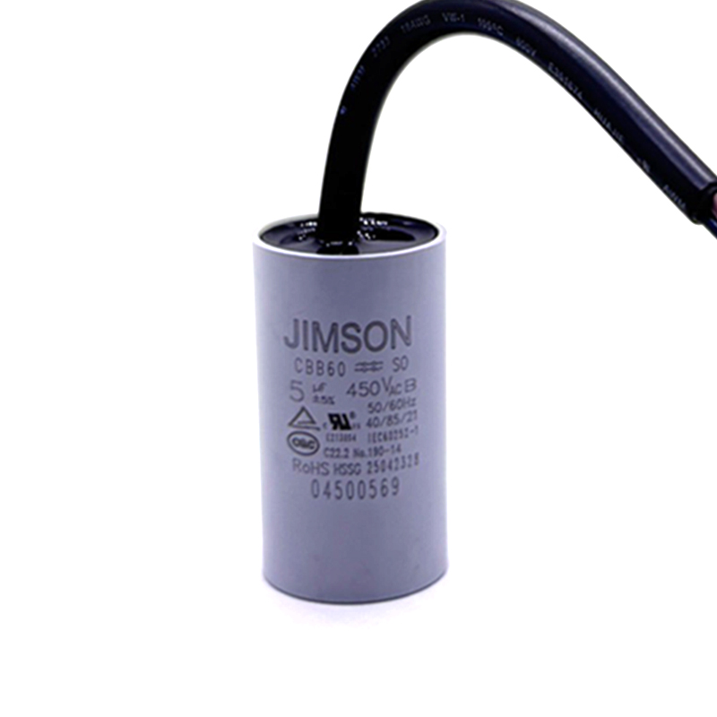 Capacitor กระบอกขาว มีสาย 5µF 450VAC JIMSON