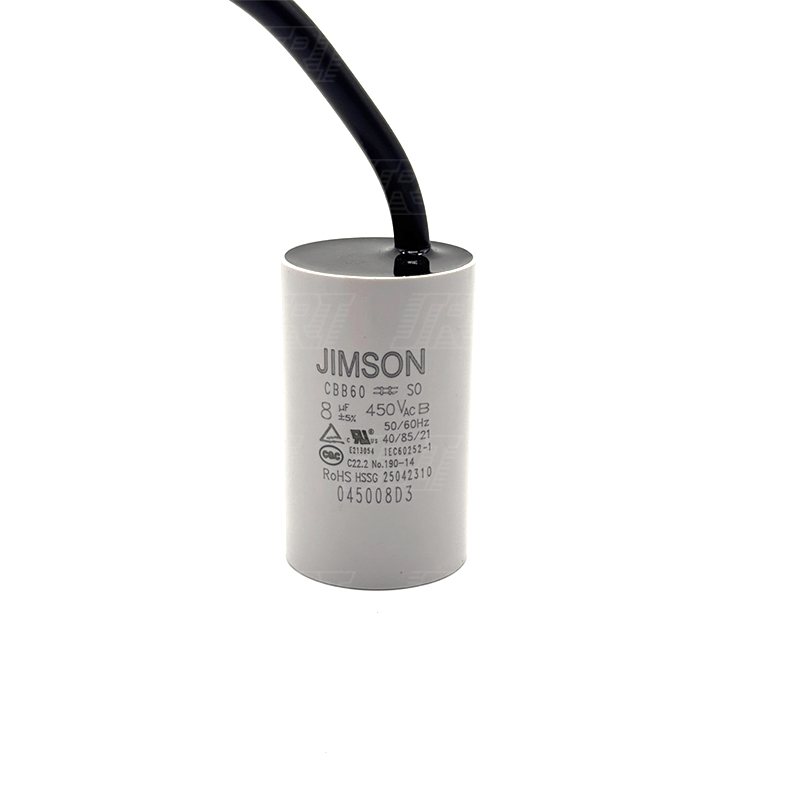 Capacitor กระบอกขาว มีสาย 8µF 450VAC JIMSON