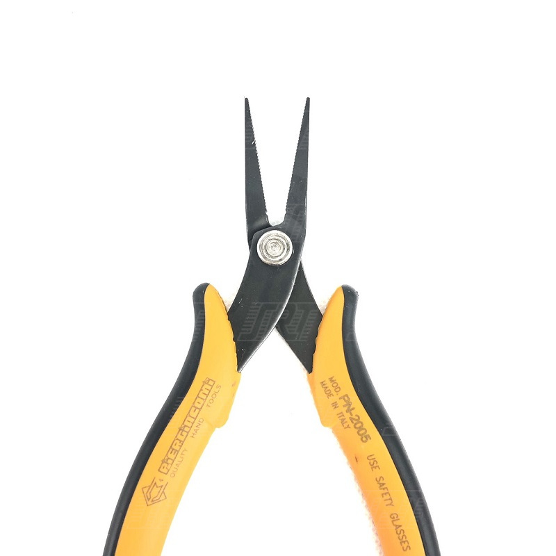 PN 2005: The PN 2005 is a serrated, pointed long nose pliers ideal to be used in difficult to reach areas. Steel thickness 3.0mm. ESD-safe handles version available.