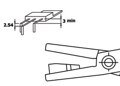 PN 5050/6D: Special pliers that enables TO220 component leads to be bent at a 90°angle in a single operation, in such a way that the central lead will be 2.54mm longer than the side leads. It is possible to adjust the distance by a sliding foil (min. 3mm) Steel thickness 5.0mm. Tool length 155mm.
