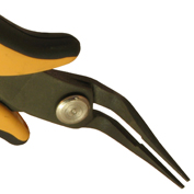 PNB 2015: The PNB 2015 has a serrated, pointed and externally rounded nose, bent at 45°, suitable for the handling of components in difficult to reach areas. Steel thickness 3.0mm. ESD-safe handles version available.