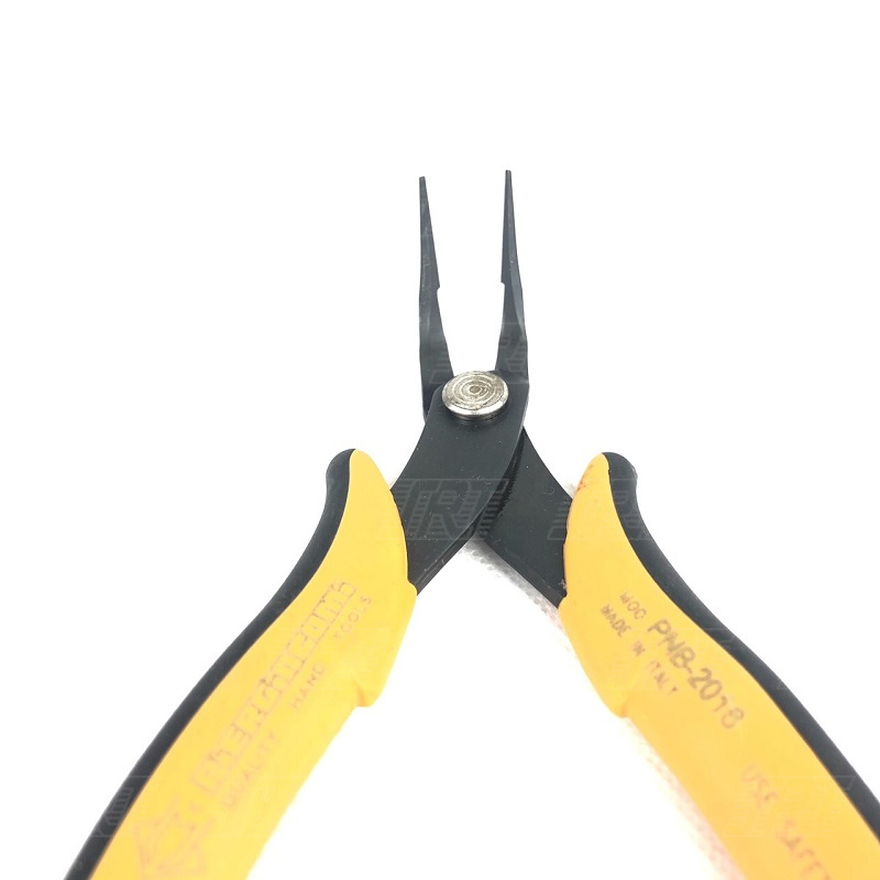 PNB 2016: คีมจับปลายยาวงอ 45° พื้นเรียบปลายกลม ช่วยให้เหมาะการมองและพื้นที่ทำงาน สำหรับการจัดการในที่ที่เข้าถึงยาก เหล็กหนา 3 mm. มีความยาวของปลายจับ 1X1.2 mm.