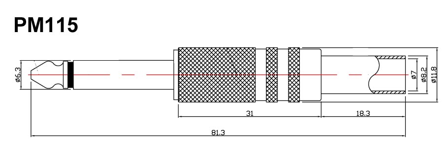 ปลั๊กไมค์ MONO เหล็กสีแดง 6.35 MM